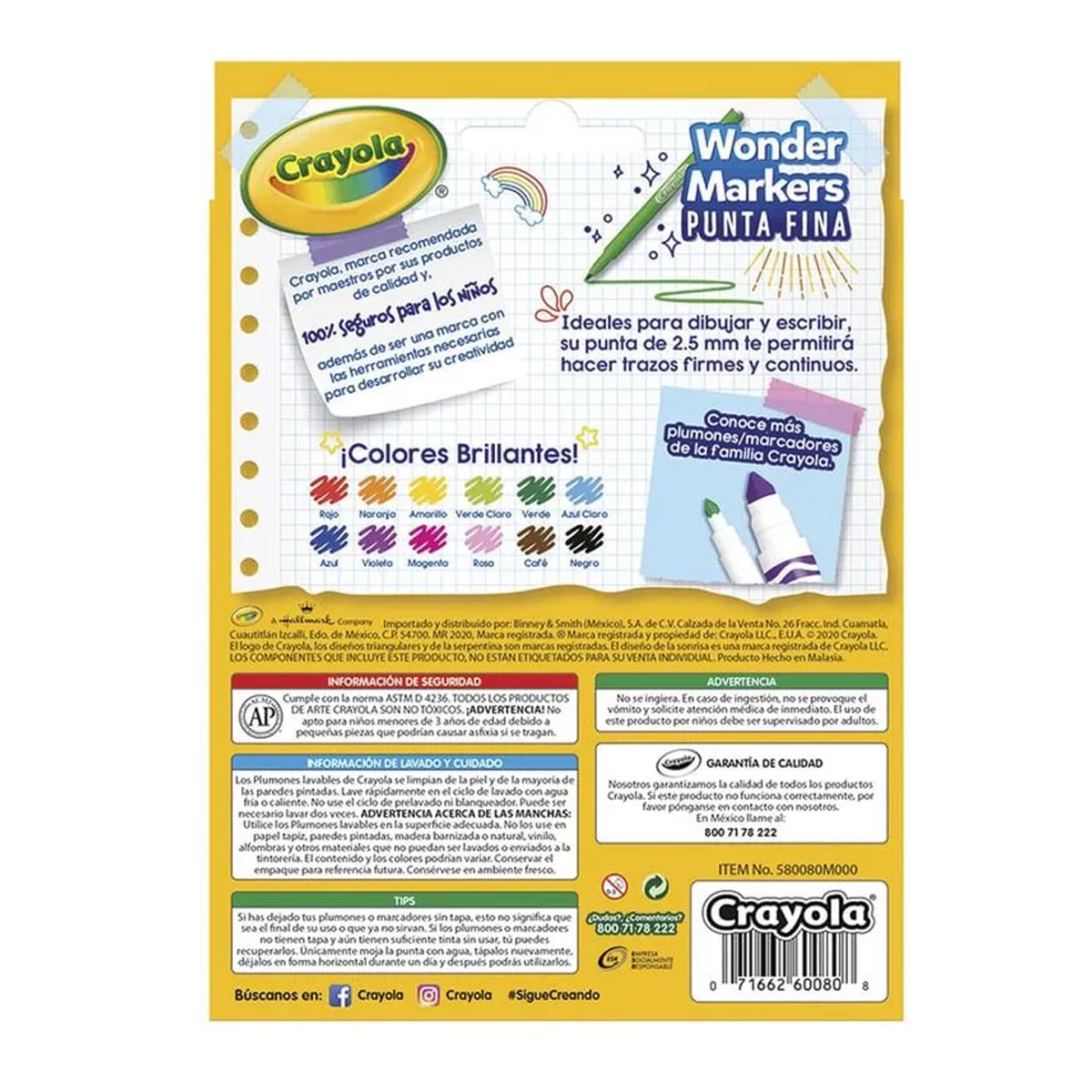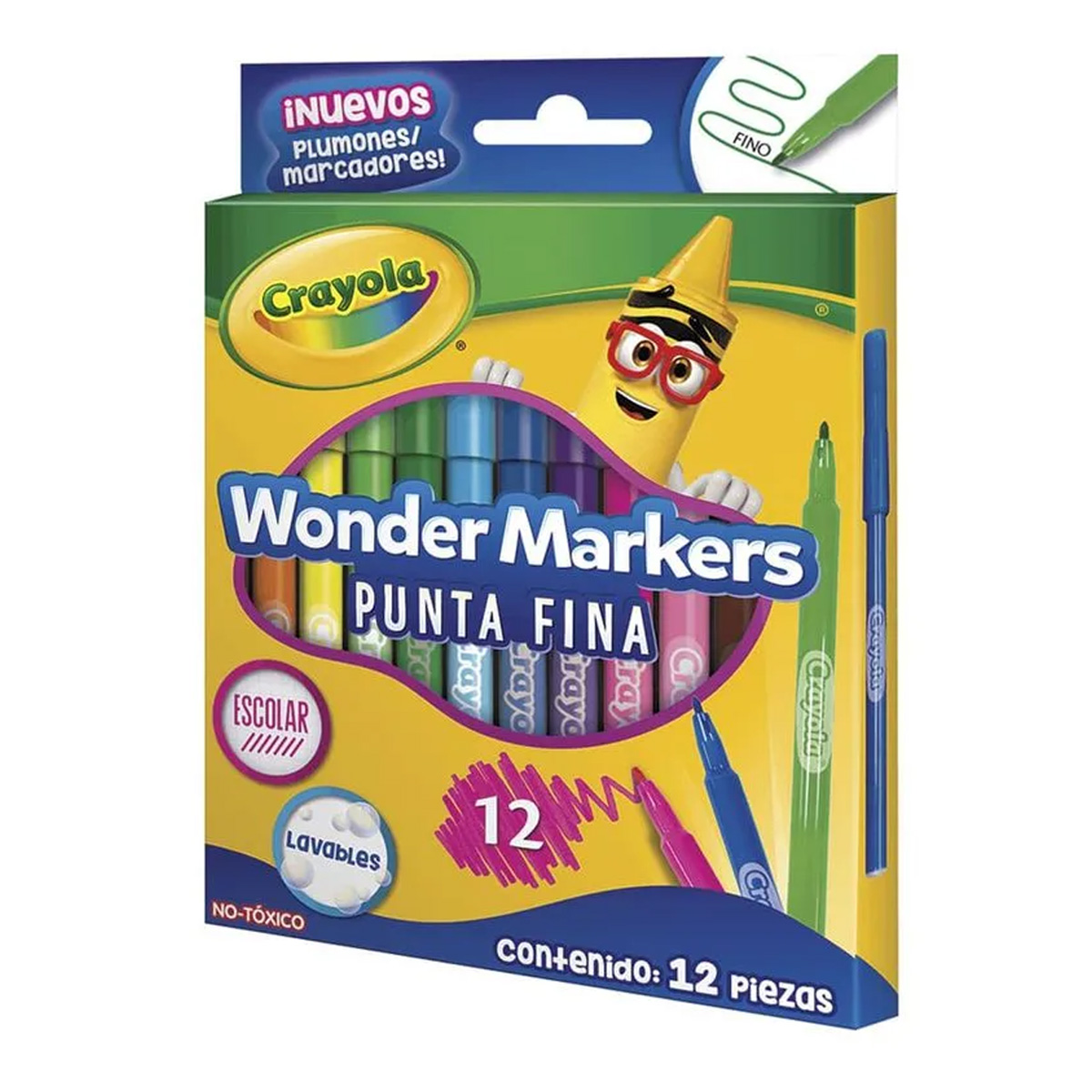 Marcador para Colorear Delgado Caja con 12 Piezas Wonder Markers Crayola 580080
